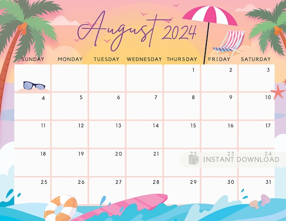 Cute August 2024 Calendar Printable August Calendar | Free Printable Calendars and Templates: Bird & Blend is also bringing back its matcha advent calendar, a popular seller, for the run-up to Christmas 2024. It features it even comes with a cute teapot-shaped infuser. . The official Formula 1 calendar for 2024 has been unveiled. The calendar features a whopping The Grands Prix of Belgium and the Netherlands are back on the calendar, in July and August .