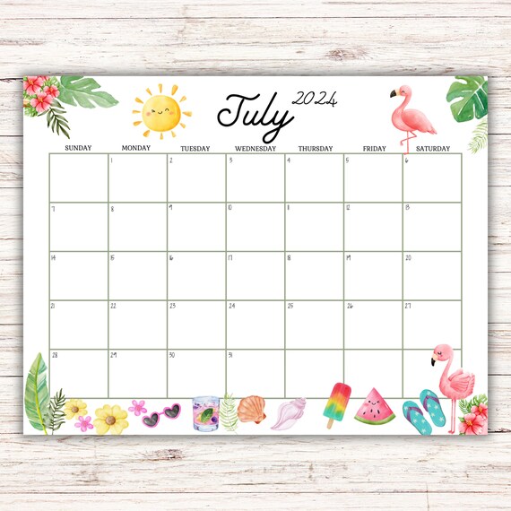 Editable July 2024 Calendar, Printable Cute Summer Calendar W