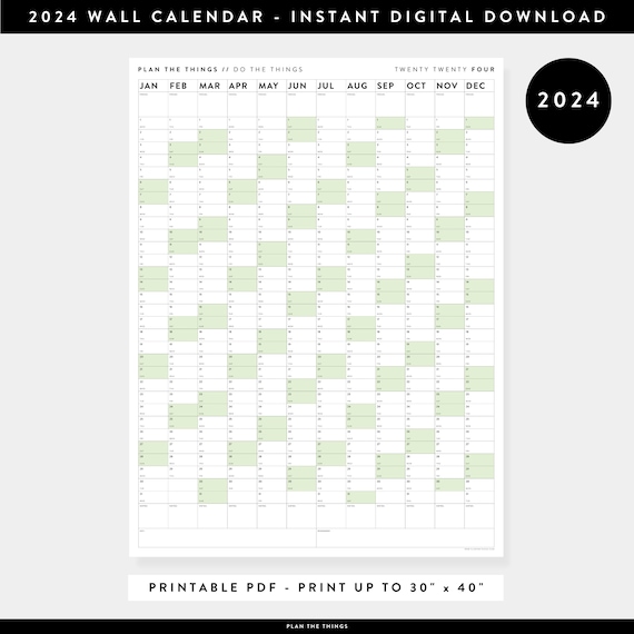 PRINTABLE 2024 Wall Calendar Digital PDF Instant Download 2024