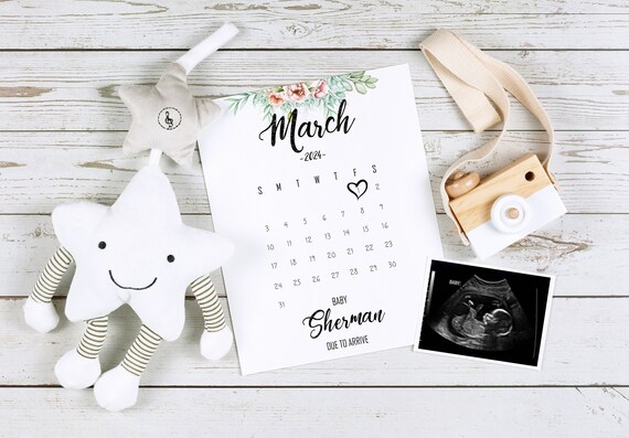 PREGNANCY ANNOUNCEMENT Calendar, MARCH 2024, Custom Social Media