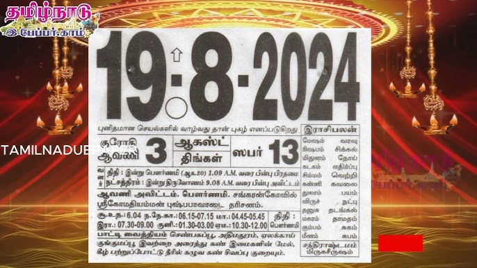 Panchangam, 19 August 2024 Tamil Calendar #tamilnaduepaper
