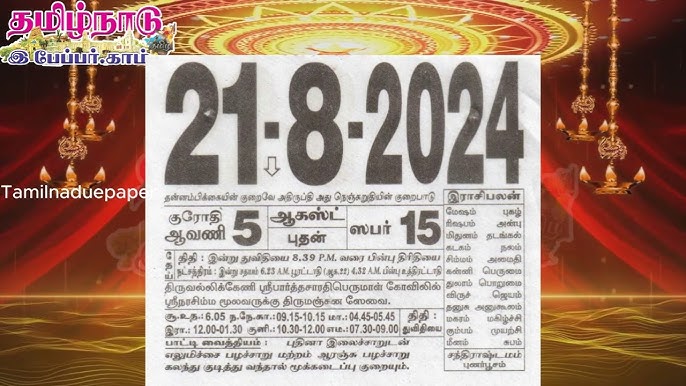 Panchangam, 21 August 2024 Tamil Calendar #tamilnaduepaper